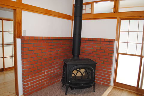 築35年の家をFPウレタンパネルで断熱改修し、薪ストーブを設置しました。Q値 1.43w/㎡k、断熱改修した面積43坪。