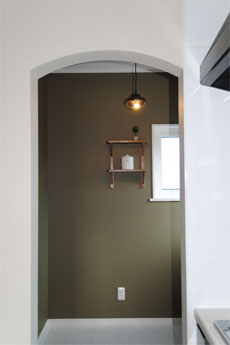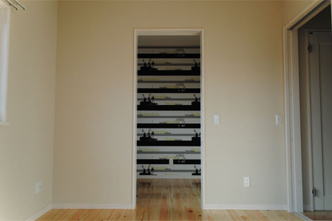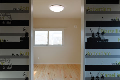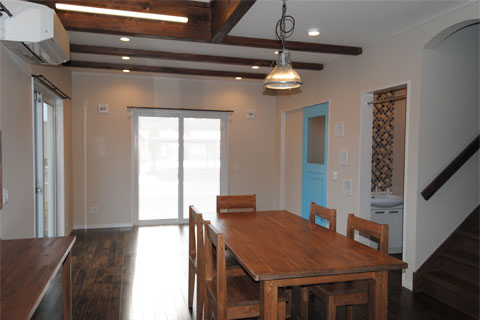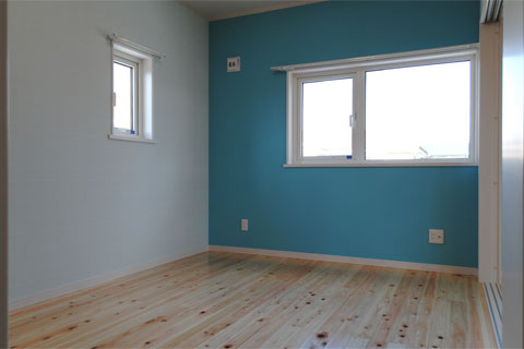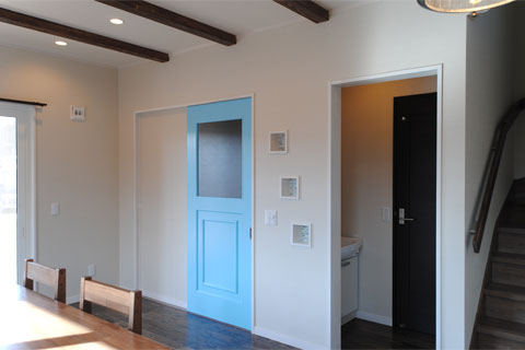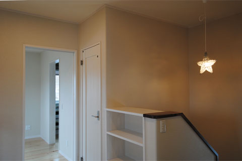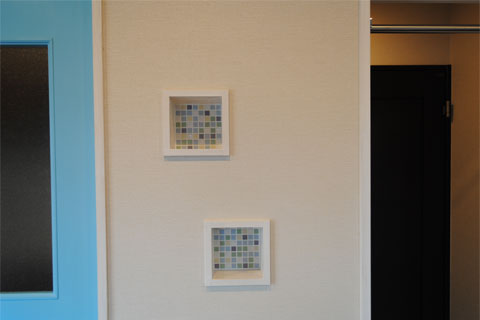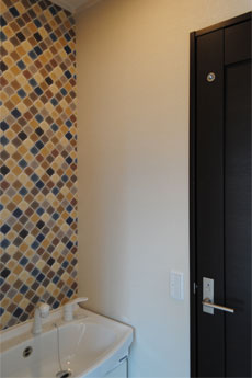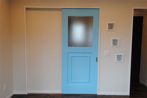 水色のペンキ扉、ニッチのモザイクタイル、星のライトetc...家族の楽しい!を取り入れました。