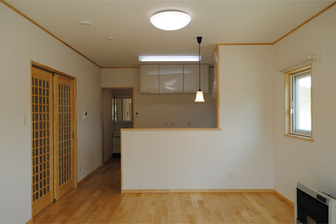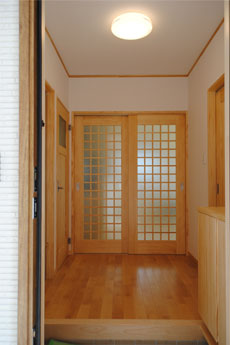 無垢フローリングはカバ、クリアー仕上の無垢の建具との相性も良く、明るく優しい空間になりました。