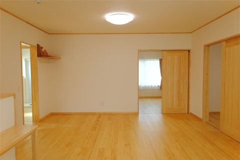 床、建具に使われた無垢材の雰囲気を活かし、ナチュラルな色合いでコーディネートしました。