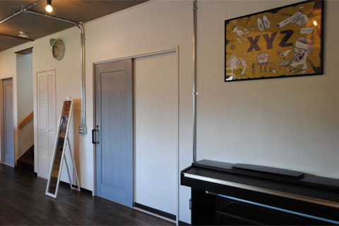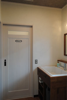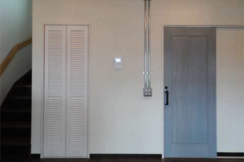 リビングの扉は自らペンキを塗り、取手を製作されました。